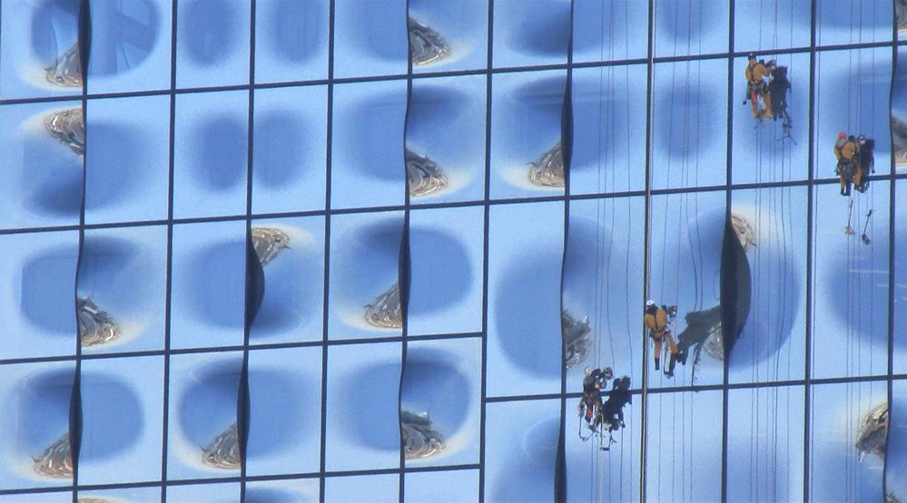 Industriekletterer an der Elbphilharmonie Tags: Elbphilharmonie Elphi Fensterreiniger-Elbphilharmonie