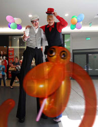Ballontiere, Modellierballons, Formballons vom Stelzenläufer in Shoppingcenter und Einkaufszentrum.