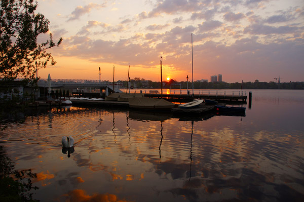 Tags: Schwan Alster Sonnenaufgang Rabenstraße Hamburg