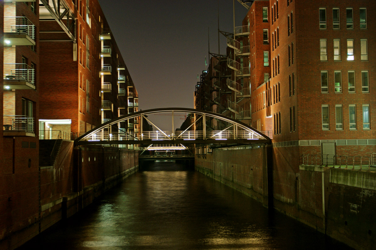 Fleet in der Speicherstadt bei Nacht Tags: Speicherstadt Fleet Elbe Hafen Hamburg